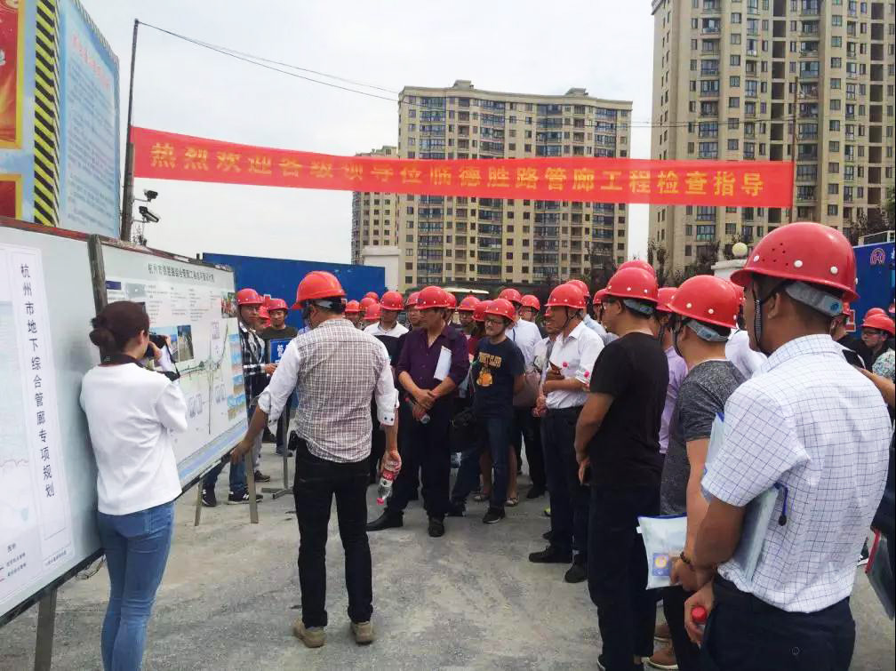 隨后,與會人員參觀了管廊樣板段并和德勝路地下綜合管廊工程的建設者進行深入交流,詳細了解管線入廊情況,對德勝路地下綜合管廊工程建設所取得的成績給予了充分肯定和較高贊譽。我公司副總經理翁靈楓代表公司全程陪同參觀。