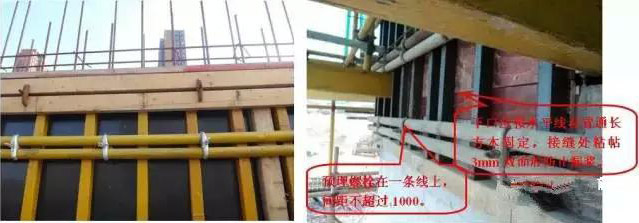 4.5剪力墻陰角加固:剪力墻陰角處必須采用兩道穿墻螺桿加固,長方向陰角處穿墻螺桿應(yīng)加長加固短方向端頭板。