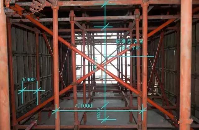 1.2架子立桿高度應(yīng)選擇比樓層凈空高度低400mm左右的鋼管;標(biāo)準(zhǔn)層應(yīng)設(shè)置三道縱橫向水平管,掃地桿離地不得超過200(碗扣件離地不得超過350),鋼管上端自由端不得超過500,可調(diào)U型頂托螺紋部分不得超過250。