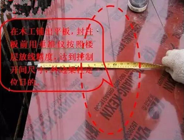 2.6樓板模板安裝完成后,應(yīng)在模板上設(shè)置200或300控制線,以此作為開間和墻柱、邊梁的控制線,保證邊梁支模準(zhǔn)確。