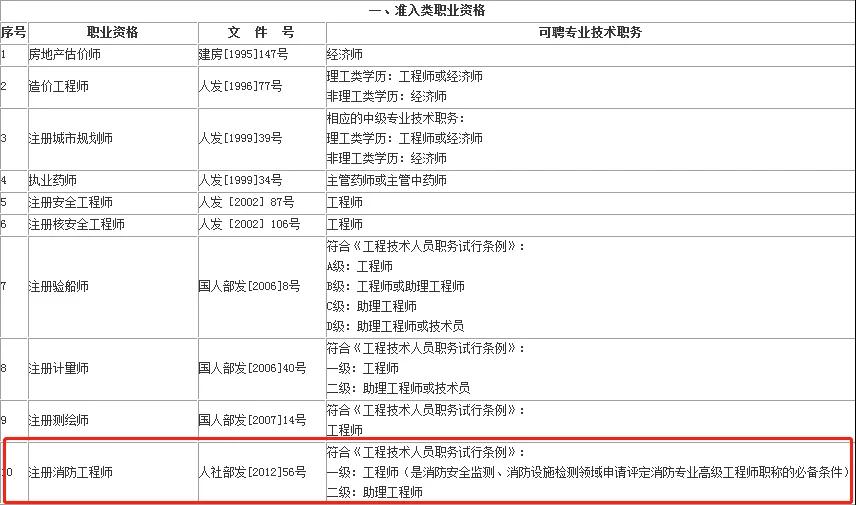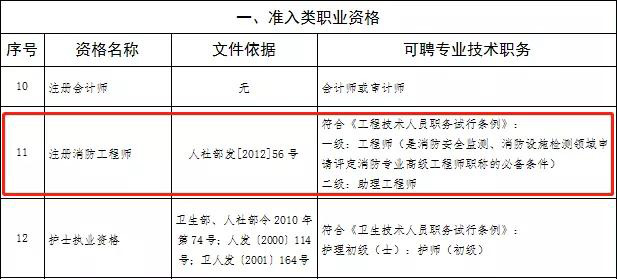 從《安徽省關于在部分職業領域建立專業技術類職業資格和職稱對應關系的指導意見(試行)》通知中得知:取得房地產估價師、造價工程師、注冊城鄉規劃師、執業藥師、注冊安全工程師、注冊核安全工程師、注冊驗船師、注冊計量師、注冊測繪師、注冊消防工程師、護士執業資格、醫師執業資格等12項準入類職業資格的人員,用人單位可根據相關任職條件和崗位空缺情況聘任相應的專業技術職務。