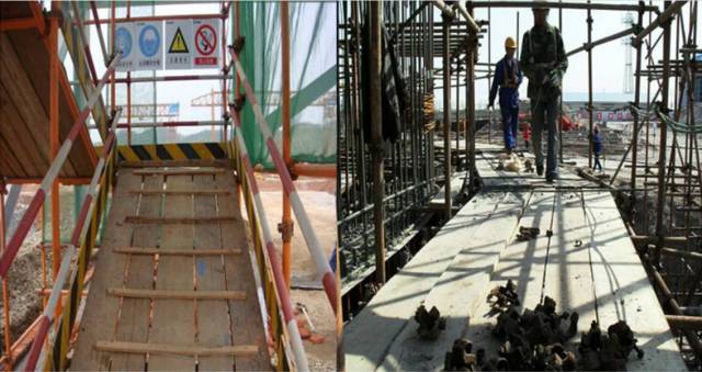1)腳手架上下措施有兩類:掛設爬梯和搭設“之”形步道或斜步道;