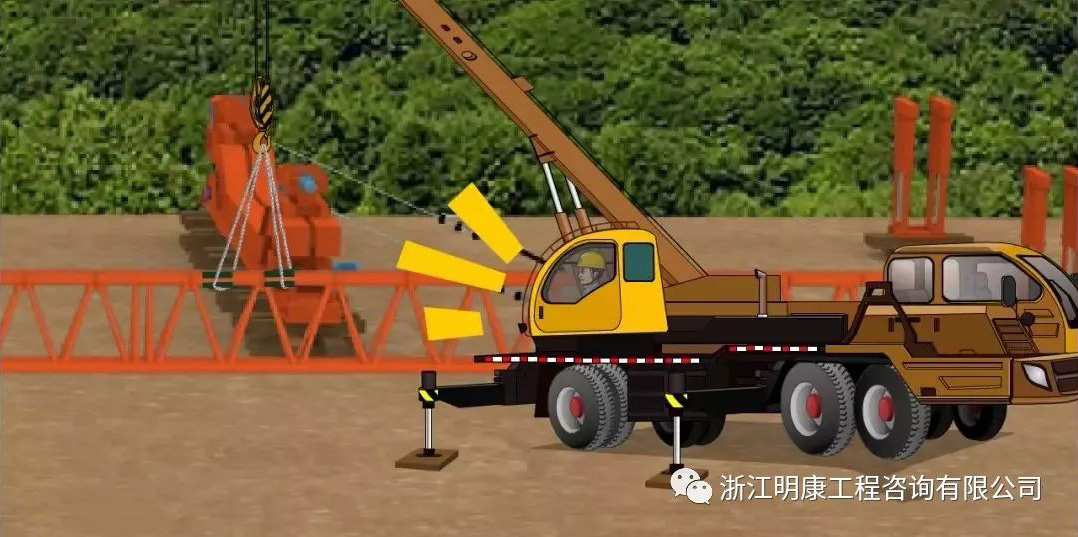 10、吊裝時吊點棱角處要包角,以免割斷吊索。正式起吊主、導梁等長、大、重吊件前,必須進行試吊。