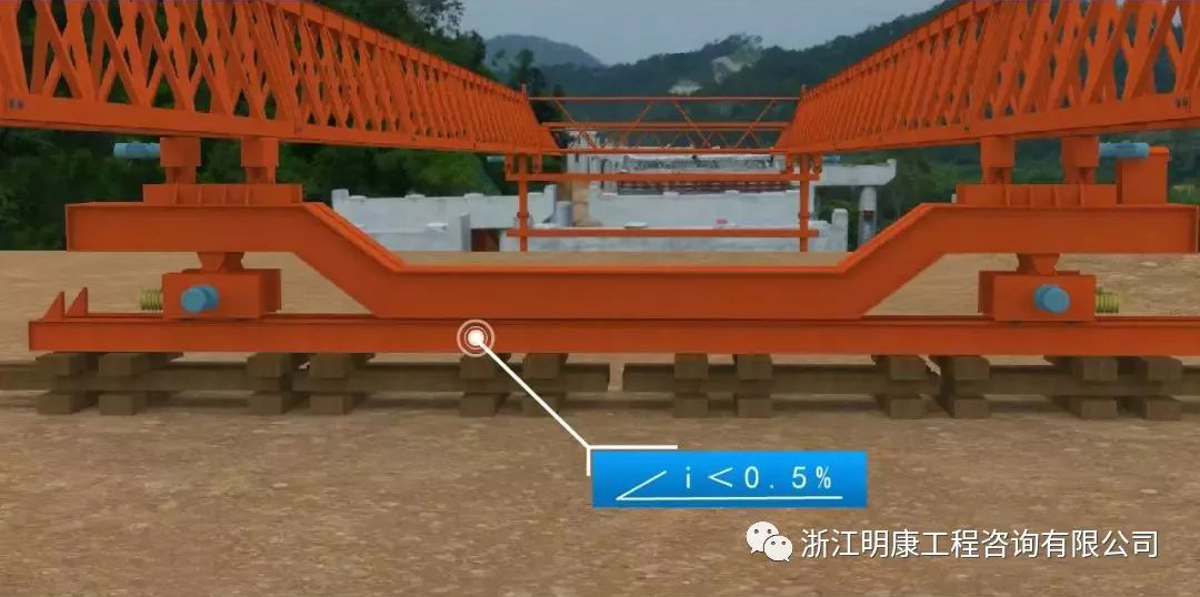 19、安裝橋梁有上下縱坡時,架橋機縱向移位要有防止滑行措施。