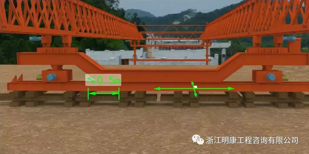 9、架橋機必須設置有效的限位裝置,在軌道有效行程范圍內設置緩沖器及端部止擋。
