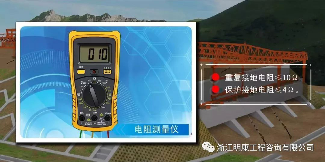 12、架橋機金屬結構應可靠接地,重復接地電阻不大于10Ω,保護接地電阻不大于4Ω。