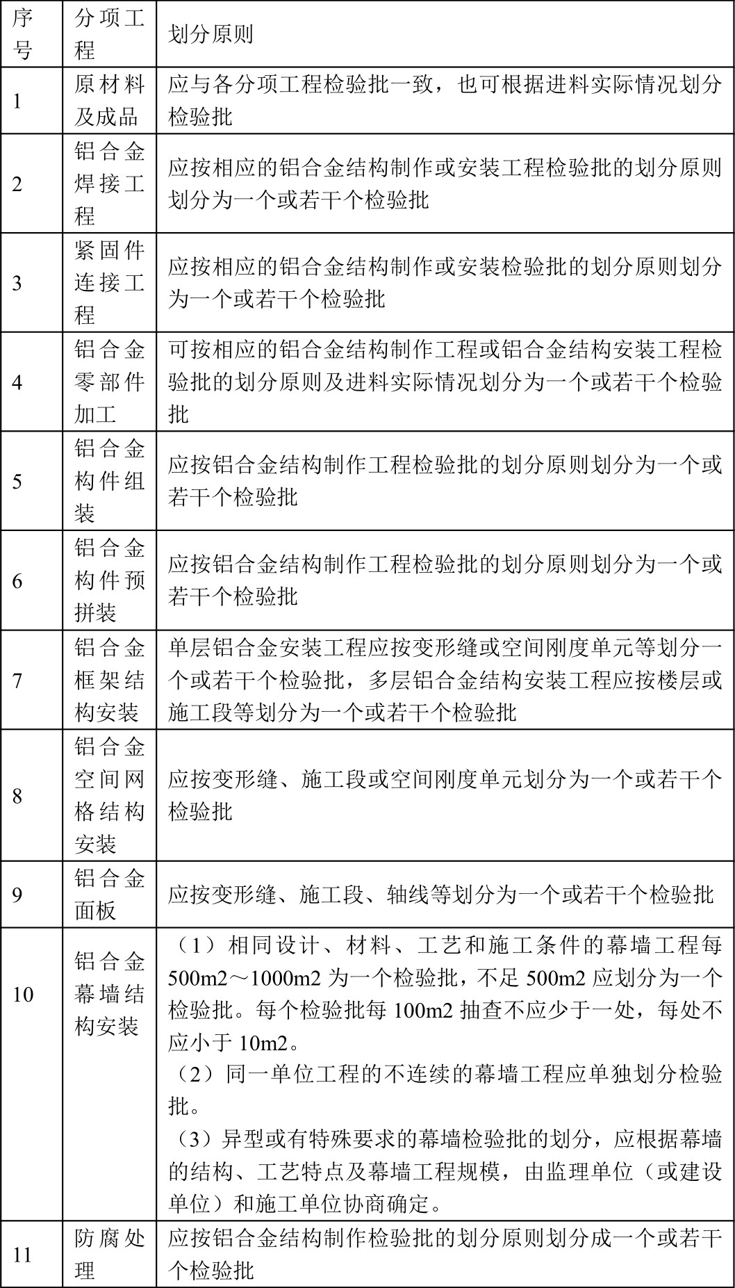 26.1 檢驗批的劃分(1)采用相同材料、工藝和施工做法的幕墻,按照幕墻面積每1000m2劃分為一個檢驗批,不足1000m2也為一個檢驗批。