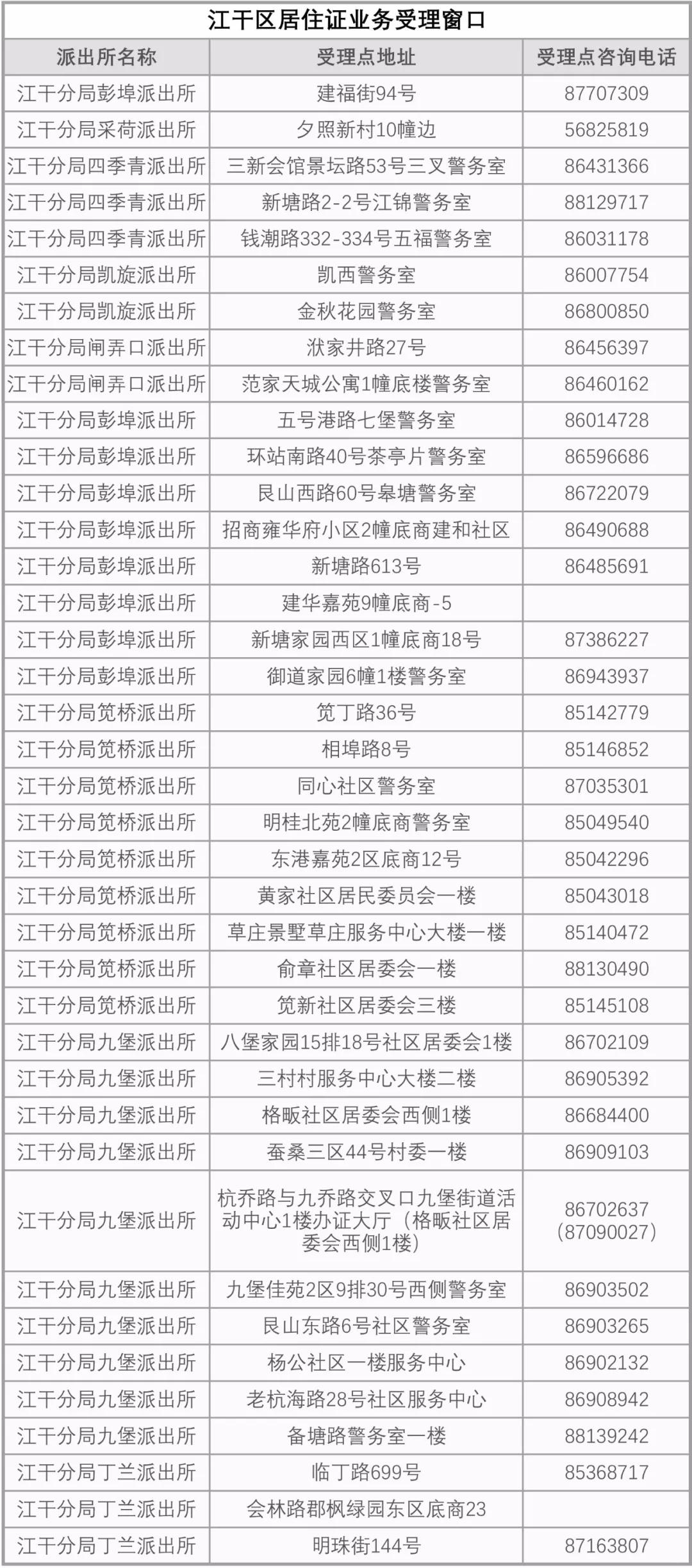注:以上信息來自杭州市居住證服務平臺網,大江東產業集聚區、下沙經濟開發區、西湖風景名勝區、蕭山、余杭、富陽、桐廬、淳安、建德、臨安辦理網點及各網點業務范圍、辦理時間等信息↓↓
