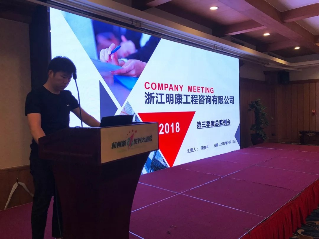 2018年10月13日下午13點30分,浙江明康工程咨詢有限公司第三季度總監例會在杭州第一世界大酒店順利召開。