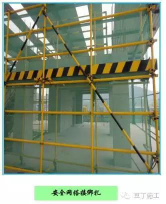 2)選用塑料扣或尼龍繩張掛安全網(wǎng),要求嚴(yán)密、平整;作業(yè)層下用安全平網(wǎng)嚴(yán)密防護(hù),施工層以下每隔10m以內(nèi)封閉一次。
