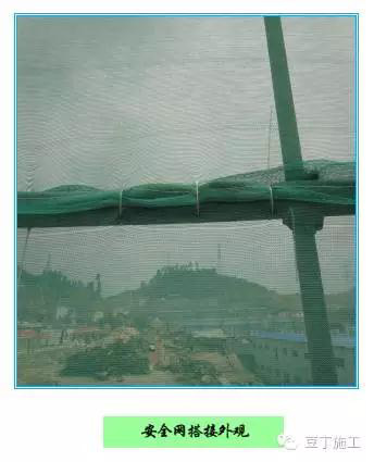 1)腳手架外側(cè)使用建設(shè)主管部門認(rèn)證的合格綠色密目式安全網(wǎng)封閉,且將安全網(wǎng)固定在腳手架外立桿里側(cè)。