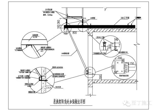 1)角部懸挑部分4面應(yīng)設(shè)置橫向斜撐。