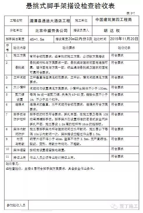懸挑式外腳手架驗(yàn)收的內(nèi)容